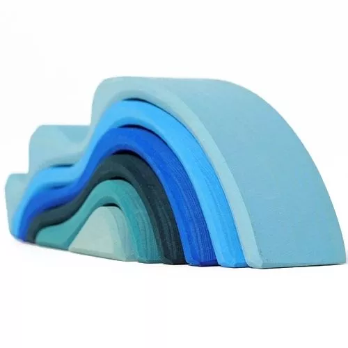 Deze houten speelset ‘Wasserwellen, klein’ van het Duitse merk Grimm’s is veelzijdig speelgoed. De watergolven in koele waterkleuren spreken kinderen direct aan.