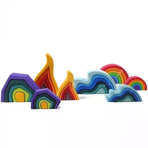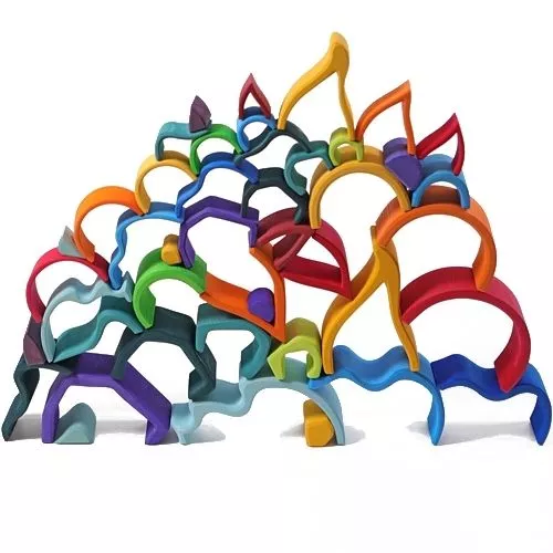 De grillige vormen prikkelen de fantasie: er kan een meer mee aangelegd worden en voor een kleine bruggenbouwer bieden ze een nieuwe brugvorm met bogen. Op zijn kant kan het als omheining bescherming bieden aan speelgoeddieren. Of wordt het een onderwaterwoning? Deze watergolven zullen altijd een onderdeel  zijn van fantasierijk bouwen en spelen.