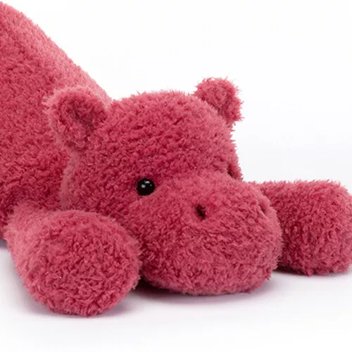 Deze nijlpaardenknuffel ‘Splootie Hippo’ van het Engelse merk Jellycat houdt wel van een grapje met zijn knalroze vacht. Deze goedhartige nijlpaardknuffel is alles behalve slaperig. Hij kan niet wachten op dikke knuffels. Met zijn ronde snoet, kleine oortjes, fluweelzachte vacht en zwarte kraalogen is het knuffelnijlpaard hartveroverend. Aan zijn lange poten is hij gemakkelijk vast te houden.
