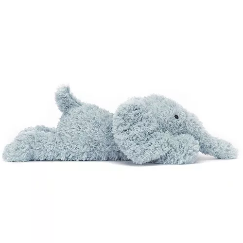 Deze babyolifant ‘Tumblie Elephant’ van het Engelse merk Jellycat wacht geduldig op een knuffel.