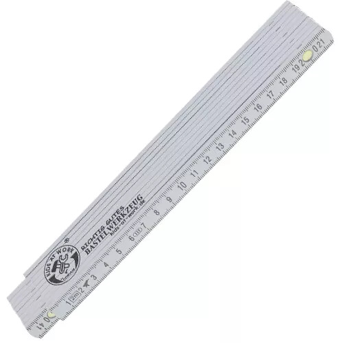 Deze duimstok meet 2 meter als die uitgevouwen is. Dat is voor grote kinderen hanteerbaar.