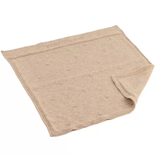 Een behaaglijk, gebreid poppendekentje ‘Knitted Blanket Terra’ van het Spaanse merk Miniland om poppen lekker in te stoppen en heerlijk warm te houden. De luxe deken is zacht en heeft een patroon van lieflijke bolletjes aan één zijde.