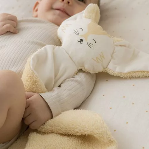 De knuffeldoek ‘Fennec Doudou’ van het Spaanse merk Nobodinoz biedt comfort aan kleine dromers. Om te tutten en te frutten.