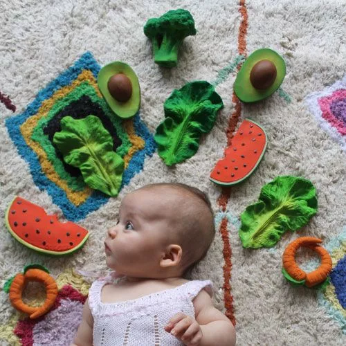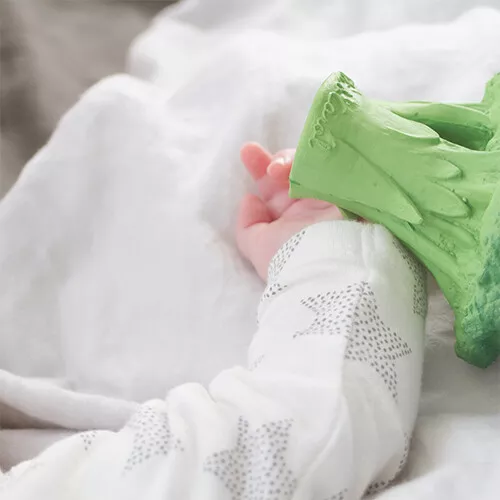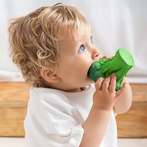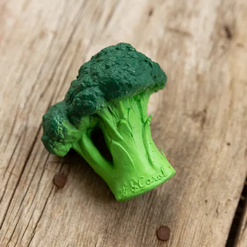 Het bijt- & badspeeltje ‘Brucy the Broccoli’ van het Spaanse merk Oli & Carol gaat graag mee in bad en is prettig bij het doorkomen van de tandjes!